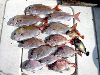 いつもどおり7時出港、ギャルズはお休み。少し西よりの風で波あり。まずは、金ヶ崎周辺でメバルの調査をして見ましたが、なにも起こらずマナイタに移動して鯛釣りをはじめました。最初は船団から離れて、植野丸はハリスの長い仕掛け、Sさんはチョクリで釣っているとチョクリには良くあたるのですがこちらはアタリなし、そうしていると仕掛けがプツリ。仕掛けをチョクリに変更して巻き巻きしているとアタリがそこそこあります。久しぶりに当たったバレタの鯛釣り気分を楽しみました。