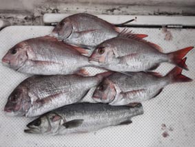 前日が釣れなかったので、釣れないけど暇ならおいでメールに元気良く反応、入れ食い?。本日は、違うポイントに移動、途中スナメリが船の前に飛び出してちょっと驚きました(^_^.)。さて、朝からの引き潮、沖のハネ釣りポイントは船団が出来ていました。こちらは船の少ないポイントで少しだけある反応を何度も流し、サビキとジギングでチャリコ・ハネを釣り潮が動かなくなったので金ヶ崎方面に移動、ここではチャリコを少し追加、その後釣れなくなったので帰る方向でポイントを確認しながら港近くに帰り、反応があったので、ともか丸にママカリ仕掛けで確認してもらうとイカナゴの反応らしくママカリ仕掛けにかかってきます。それを餌にして投入する良いアタリがあったそうですが掛からず、ここで終了のゴング、魚を料理して仕舞いました。