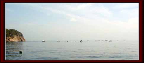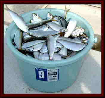 出港9:30前、海は穏やかキス狙いで金ヶ崎に一直線、三人で話しをしながら10:00頃到着、たくさんの船が、タイ狙いなのか、金ヶ崎先端付近に集まっている、こちらはキス狙い、広く空いているポイントに投錨し釣り始める。みなさん最初は、ぽつぽつと釣っていましたが、そのうち釣れなくなり、ポイント移動してもアタリが無くなったので、13:00前にママカリ釣りのためポイント移動開始、ここでは、takkieさんがダントツ一番でした。