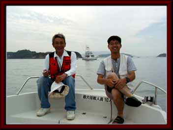 takkieさんと船長○憲さん豪華な船をバックに