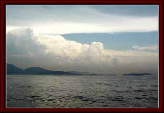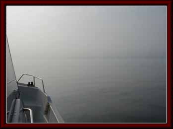 港を7:00に出航、天気は良いし、海は穏やかそのもの、車で走っているより乗り心地がいい、しかし、やかましい(^_^;)、目的地は金ヶ崎、最近濃霧がよく発生しているが今日は霞んでいる程度。