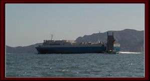 前日ツバスが釣れたので、調子にのってツバスをもっと釣ってやろうと思い金ヶ崎へ一人で出動、出港が11:30頃いつもながら用事があり出発が遅い(^_^;)、金ヶ崎に向けて走るが北東の風があり波がある、しかし、いつも金ヶ崎は穏やかなことがあるので行くだけ行ってダメならやめようと進む、途中大きな船が列んで進んでいるが速い(^_^;)、こちらは波でスピードを落としているがそれでも・・・、車の運搬船なのか後ろ水を飛ばしながら走っている、先に行かせて後ろを通り金ヶ崎に到着、やはり穏やか(^_^)/、金ヶ崎の岬で北と東でぜんぜん波が違う、不思議である。