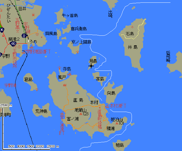 牛窓は右上・与島は左側になりますがこの地図には載っていませんm(_ _)m