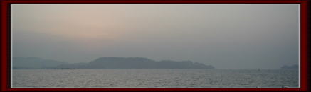 左が前島、右が黒島、その間を抜けた後日が昇りました。