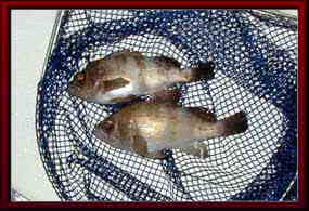サビキで釣れたメバルと脱走しないように袋に入れたイイダコ。