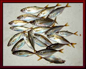 昼に釣ったアジ、真ん中で跳ねている一匹一回り大きかったです。
