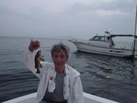 をくれたので3時頃か目が覚めて寝られないんです。頭は起きますが身体か起きません、どうにか5時半頃に自宅出動、出港は7時前だったかな、到着すると10艇ほどが釣っていましたが釣り上げたの見ません、一度置き竿にしていたときアタリがあって、メバル竿とスピニングライン3号のドラグがどんどん出て行き、手持ちで頑張りましたが、最後は針が外れてしまいました。引き方からスズキのでっかいのか青物のような感じでしたが残念です。逃げた魚は大きく感じるんでしようね(^_^;)。