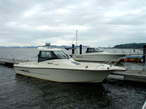 お昼になって、金ヶ崎経由でマリーナ向け、半年に一度のオイル交換です。到着すると、いつもメンテナンスであげてもらう桟橋に船が居てあげることが出来ません。横の桟橋に着けるように言われて係留すると、先ほどの船の人が呼ぶんです。mさんが船の修理が終わったので取りに来られていました。その後オイル交換が終わり、係留場所に移動、本日終了としました。