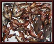 休み三日目夕方、風も落ちどうにか釣りになりそう、身内と二人、19:30出航、海に出てみると西の風が有りうねっている、追い波を受けながらゆっくり進む、金ヶ崎をまわって小豆島の東側になり、うねりは無くなった、大角鼻灯台下に波・風を避け投錨、21:00頃から釣りスタート、北から南に良い流れをしている、最初はカサゴばかりでメバルはぽろぽろ、流れが止まったり早過ぎたりで、釣れるのは一時的に続けて釣れる、いつもだが釣れない時間のほうが何倍も多い、メバルは釣れれば良い型が釣れる、海が穏やかになり落ち着いて釣っていたのと、やめようとすると釣れるの繰り返しで5:00迄釣っていた、帰りは波も無く全速で帰港できました、結局朝帰り、お持ち帰りは下の写真で、メバルが隠れてしまいカサゴが目立ちますがメバル30匹プラス・カサゴ40匹プラス・グレ3匹でした(二人で)。